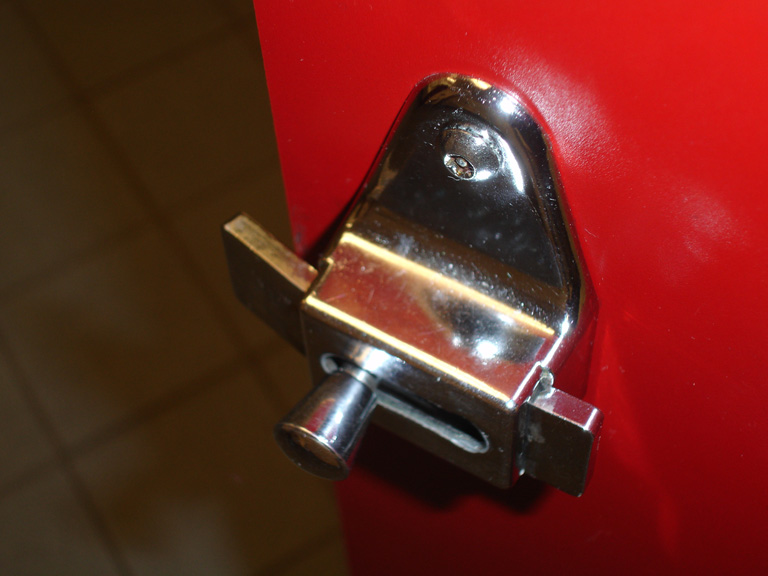 (Jake's elbow bent this door lock in the bathroom at IHOP)