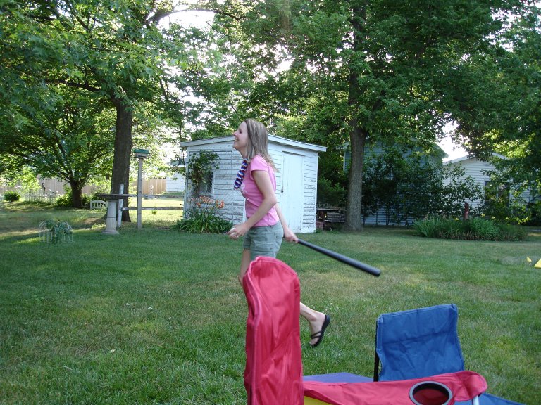 (Ready to kick some butt with a wiffle ball bat!)